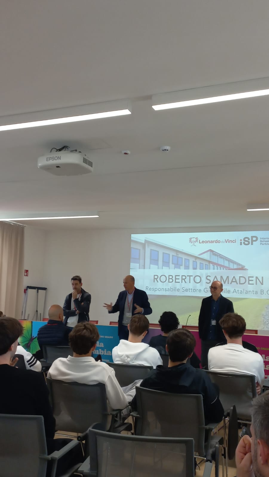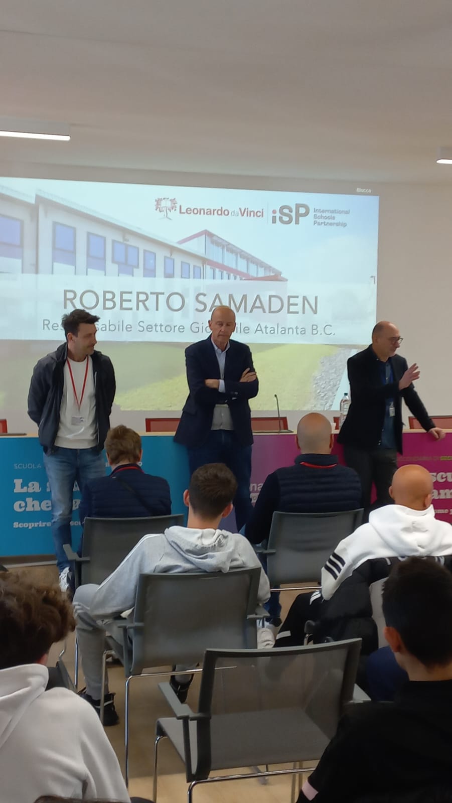 Il 24 marzo, nell’Aula Magna dell’Istituto Leonardo da Vinci di Bergamo, gli studenti delle superiori hanno partecipato a un incontro con Roberto Samaden, Responsabile del settore giovanile dell’Atalanta, e Gianpaolo Bellini ex giocatore dell’Atalanta.